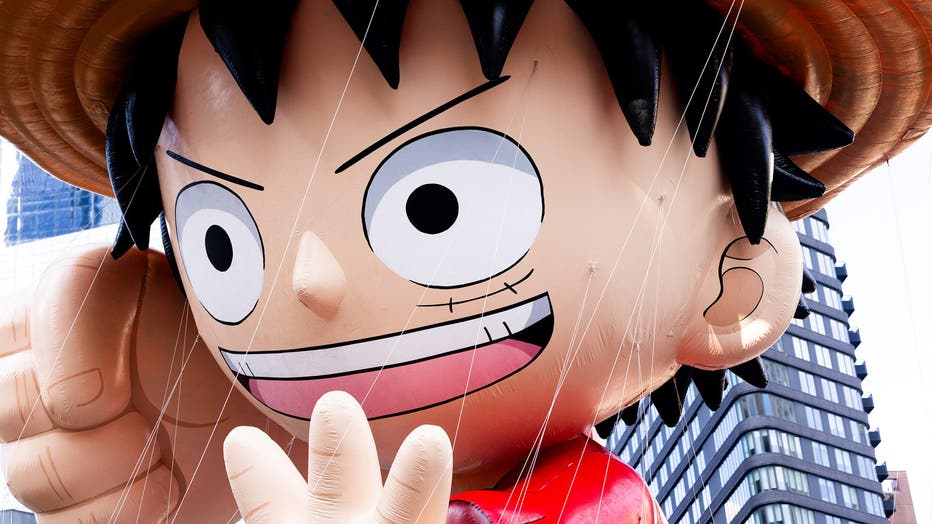 NEW YORK, NY - NOVEMBER 27: View of the Monkey D. Luffy float is seen at the 2025 Macy's Thanksgiving Day Parade on November 27, 2025 in New York City. (Photo by BG048/Bauer-Griffin/GC Images)