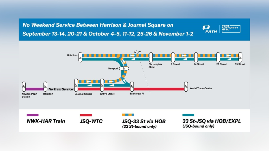 During these weekends, trains will still run between Newark Penn and Harrison, Journal Square and World Trade Center, and Journal Square and 33rd Street via Hoboken.