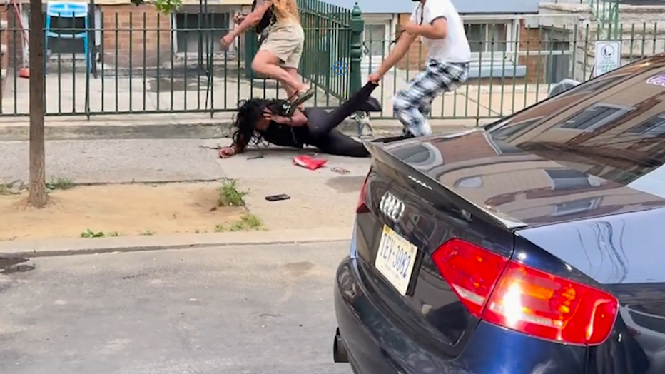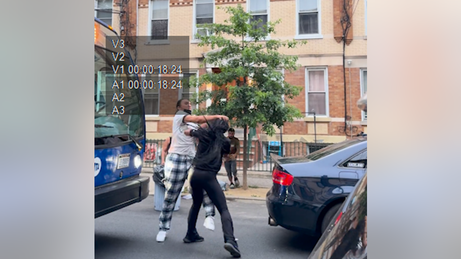 Video obtained by FOX 5 NY shows the moments before the brawl, where the 21-year-old victim is seen moving trash cans onto the sidewalk to park her car.