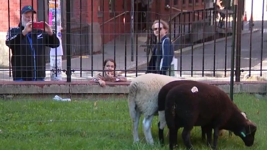 For now, the sheep can be spotted over the fence on Mulberry Street, delighting anyone who passes.