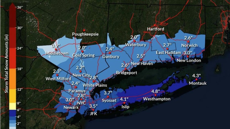 - NYC: 3–4 inches