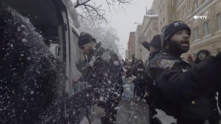 - NYPD officers pelted with snow in Washington Square Park | WATCH