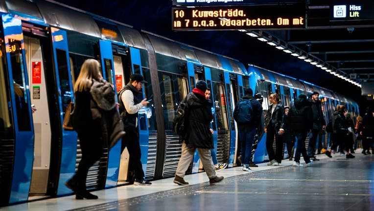Daily commuters arrive with the metro at Stockholm's central station on December 3, 2020. (Photo by Jonathan NACKSTRAND / AFP)