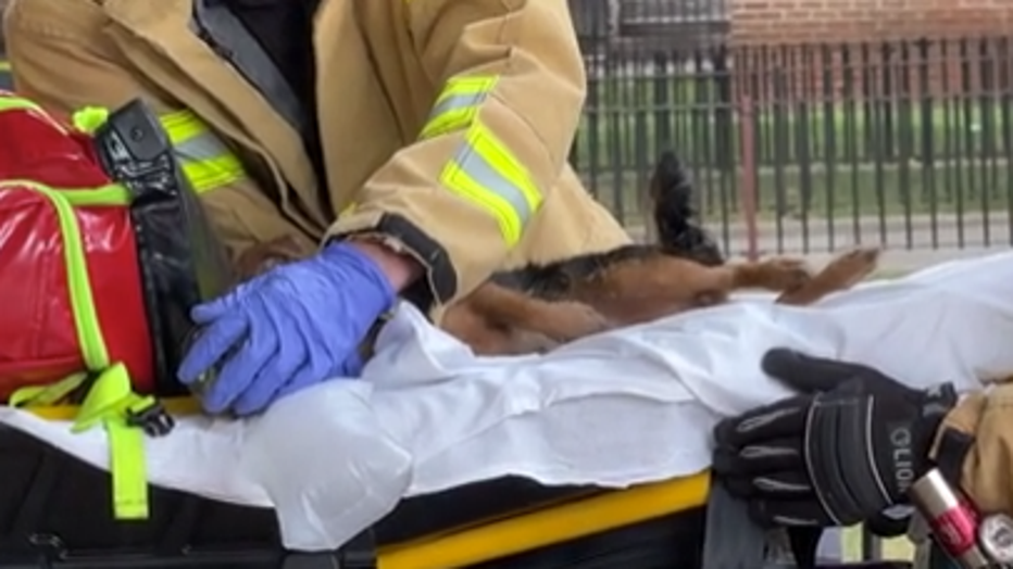 Officials also rescued two pets that were caught in the fire. They say a dog was revived at the scene, but a cat died.