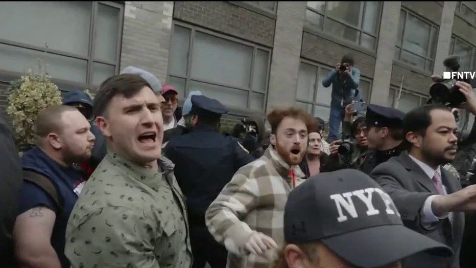 The violence erupted around 12:30 p.m. Saturday near East End Avenue and East 87th Street, where a protest organized by far-right activist Jake Lang drew a larger group of counterdemonstrators.