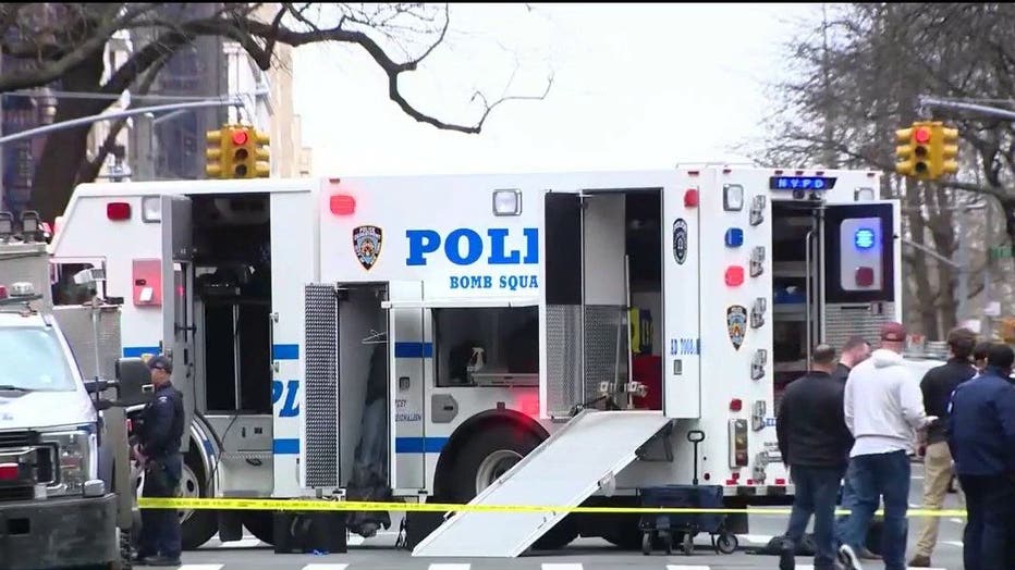 Police said tensions escalated quickly, and two devices were ignited and deployed; one in a crosswalk at East End Avenue and East 87th Street and the other on the west side of East End Avenue between East 86th and East 87th streets.