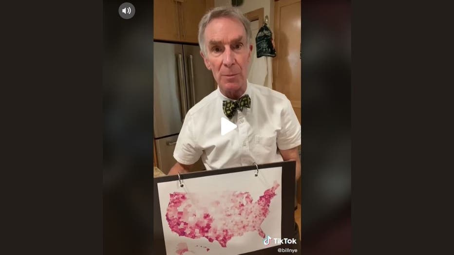 In the video, which has now gone viral and amassed over 15.5 million views, Nye revealed a map of the United States.