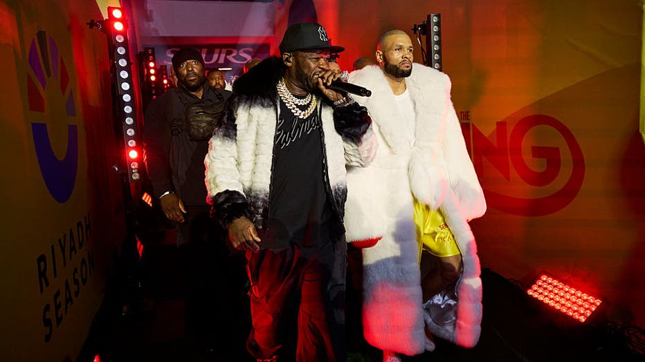 LONDON, ENGLAND - NOVEMBER 15: Chris Eubank Jr Ring Walk with his dad Chris Eubank Snr and 50 cent ahead of his fight against Conor Benn Jr at Tottenham Hotspur Stadium on November 15, 2025 in London, England. (Photo by Mark Robinson/Matchroom Boxing