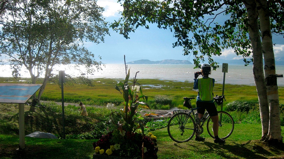 FILE PHOTO: A cyclist takes in the St. Lawrence vista at Notre-Dame-du-Portage, Quebec, on Aug. 12, 2015. (AP File Photo)