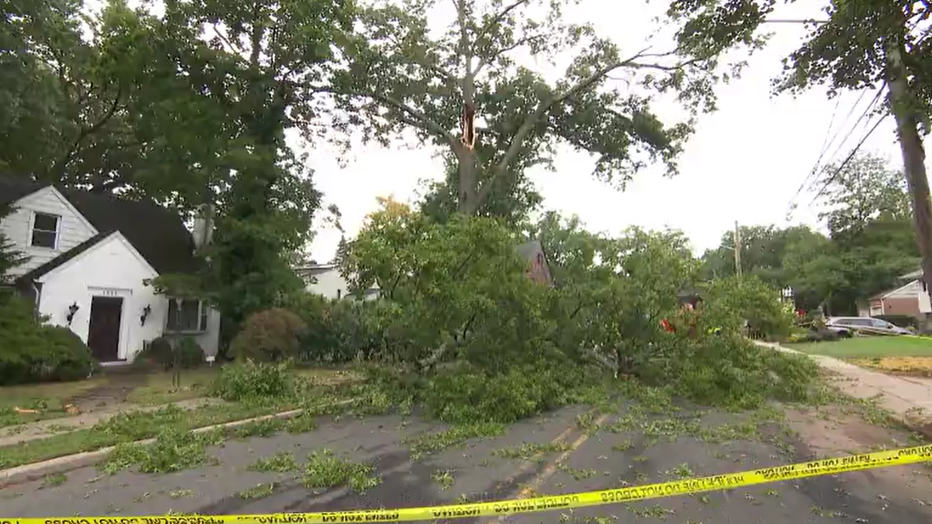NEW YORK - A large tree fell from a home in Teaneck, New Jersey Thursday morning, striking a vehicle with people inside.
