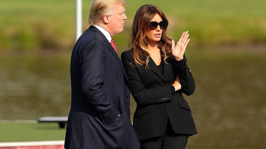 MEDINAH, IL - SEPTEMBER 27: Donald Trump and his wife Melania attend the Opening Ceremony for the 39th Ryder Cup at Medinah Country Club on September 27, 2012 in Medinah, Illinois. (Photo by Mike Ehrmann/Getty Images)