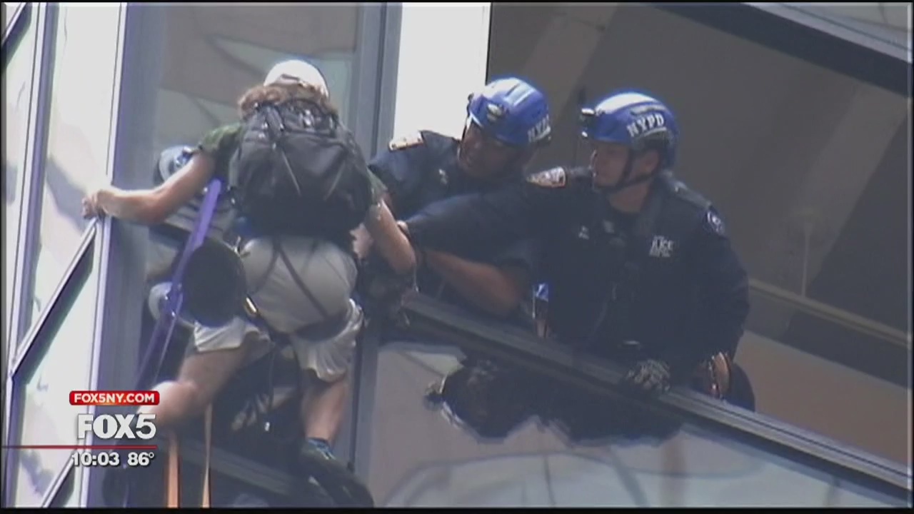 The NYPD said they were familiar with the man attempting the climb. Cops inflated giant airbags on the street and a landing on the building in case the man fell. Other officers were lowered from the top of the building on a window washing scaffold, but they didn't reach him.