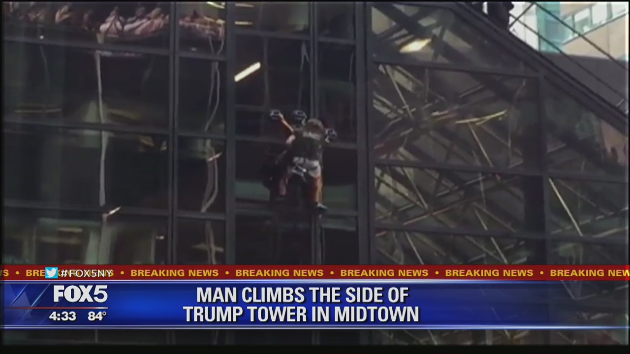 The man used suction cup devices to climb the exterior of the 58-story tower, where Trump lives and has his campaign headquarters. However, Trump was not there at the time. He is campaigning out of state.