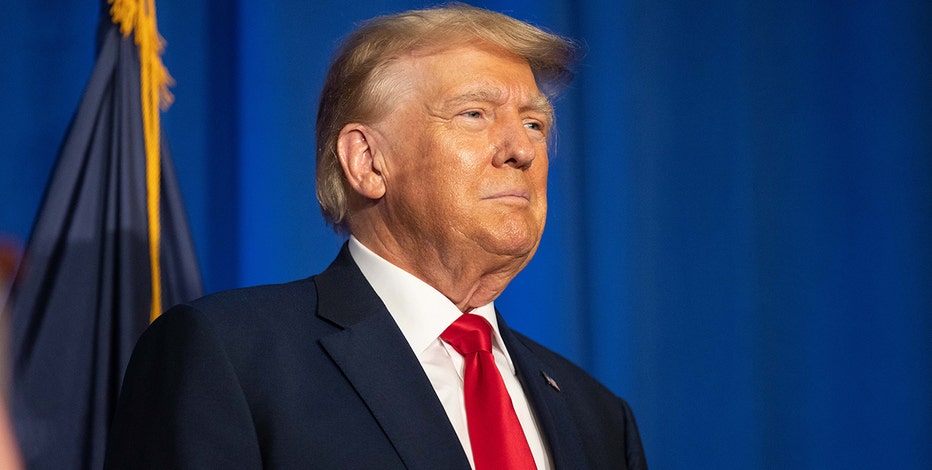 Republican presidential candidate, former U.S. President Donald Trump stands on stage after being introduced during the New Hampshire Federation of Republican Women's Lilac Luncheon on June 27, 2023 in Concord, New Hampshire. Republican presidential …