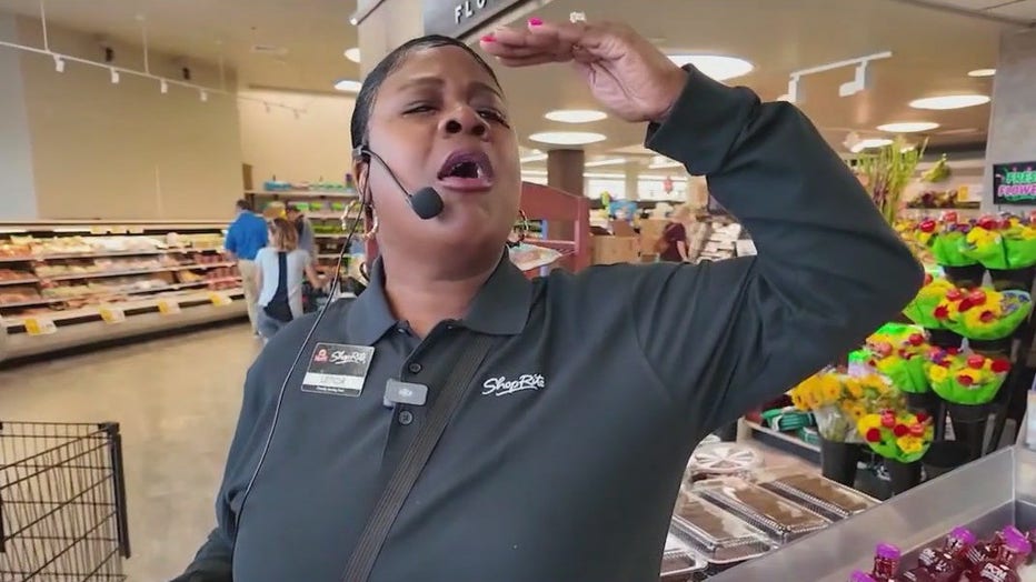 "She’s our Angel, our ShopRite Angel," one shopper said. Another added: "Heck yeah. She comes and she says now, come on now look at this sausage. You know how good this is going to be. Her words will make you spend."