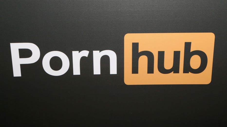 A file image taken Jan. 25, 2018 shows the Pornhub logo displayed at the company's booth during the 2018 AVN Adult Expo at the Hard Rock Hotel & Casino in Las Vegas, Nevada. (Photo by Gabe Ginsberg/FilmMagic)