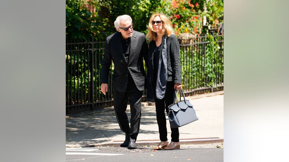 NEW YORK, NEW YORK - JULY 06: Harvey Keitel and Daphna Kastner are seen at the wake of Robert De Niro's grandson Leandro De Niro on July 06, 2023 in New York City. (Photo by Gotham/GC Images)