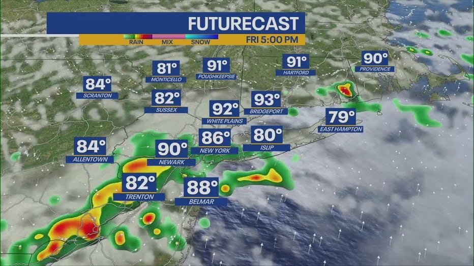 "Tomorrow is when the peak of the heat comes through," FOX 5 NY's Mike Woods says. "High temps get up into the 90s, but we have a humid condition as well, and the potential for some storms out there too."