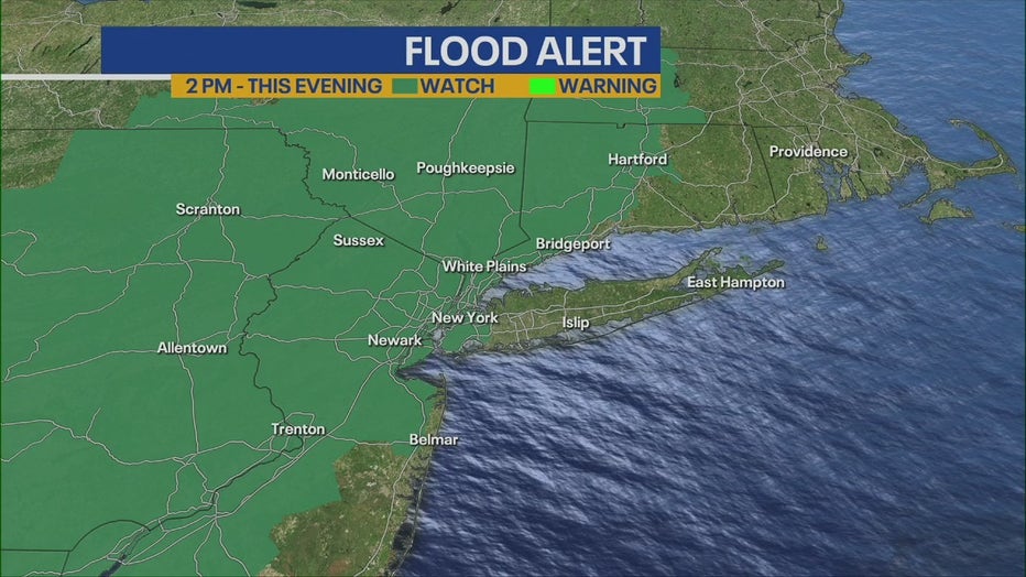 A flood watch was issued for northeastern New Jersey, the Lower Hudson Valley, southwestern Connecticut and New York City from 2 p.m. to midnight.