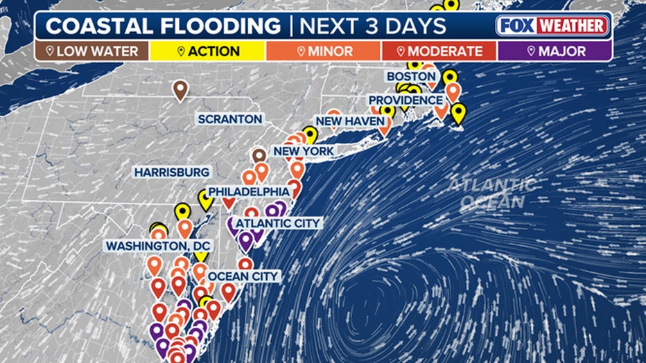 "Moderate to Major coastal flood impacts are increasingly likely," NWS Mount Holly said in a post on X. "Widespread roadway flooding and impassable roads, inundation of structures, and evacuations are possible Sunday-Monday."