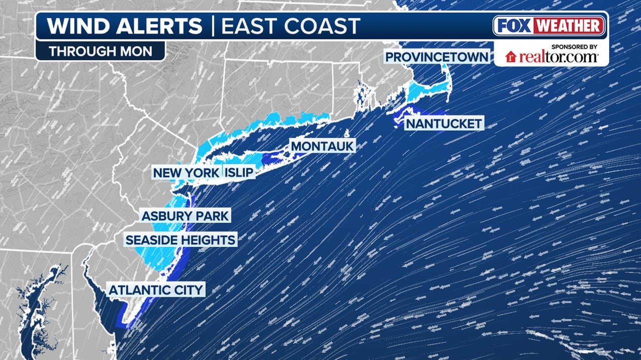 This graphic shows wind alerts in effect because of the nor'easter. (FOX Weather)