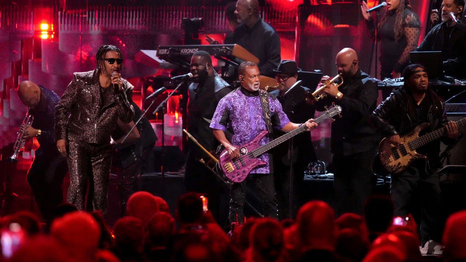 CLEVELAND, OHIO - OCTOBER 19: Inductees James J.T. Taylor (2nd from L) and Robert ‘Kool’ Bell of Kool & The Gang perform onstage at the 2024 Rock & Roll Hall Of Fame Induction Ceremony at Rocket Mortgage Fieldhouse on October 19, 2024