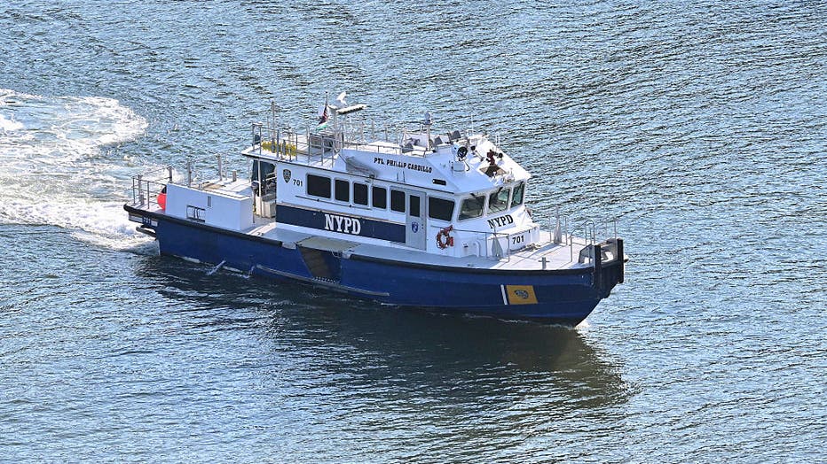 NEW YORK, NEW YORK - JULY 04: NYPD patrols water at 49th Annual Macy's 4th Of July Fireworks at Panorama Room on July 04, 2025 in New York City. (Photo by Chance Yeh/Getty Images)