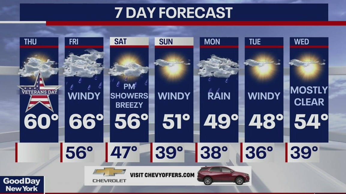 Expect sun and more clouds for Veterans Day. Cooler temperatures to start. Highs will be in the upper 50s. Rain comes in tomorrow.