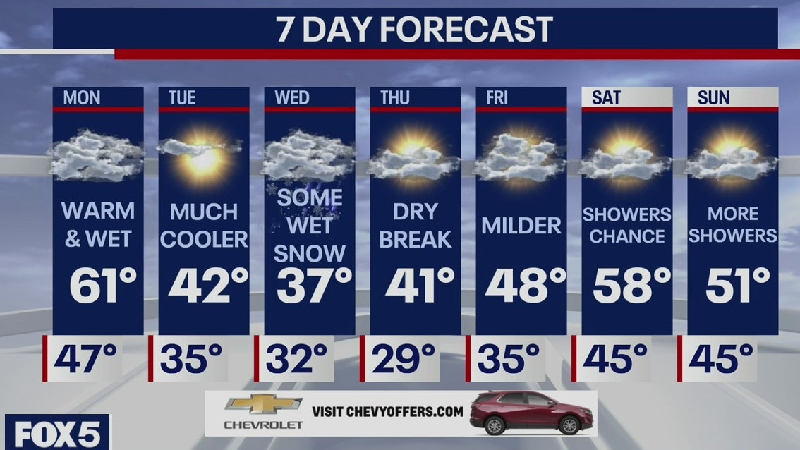 Meteorologist Mike Woods says it will feel more like spring today. The high should hit 61 degrees. The rain is moving out of the region.