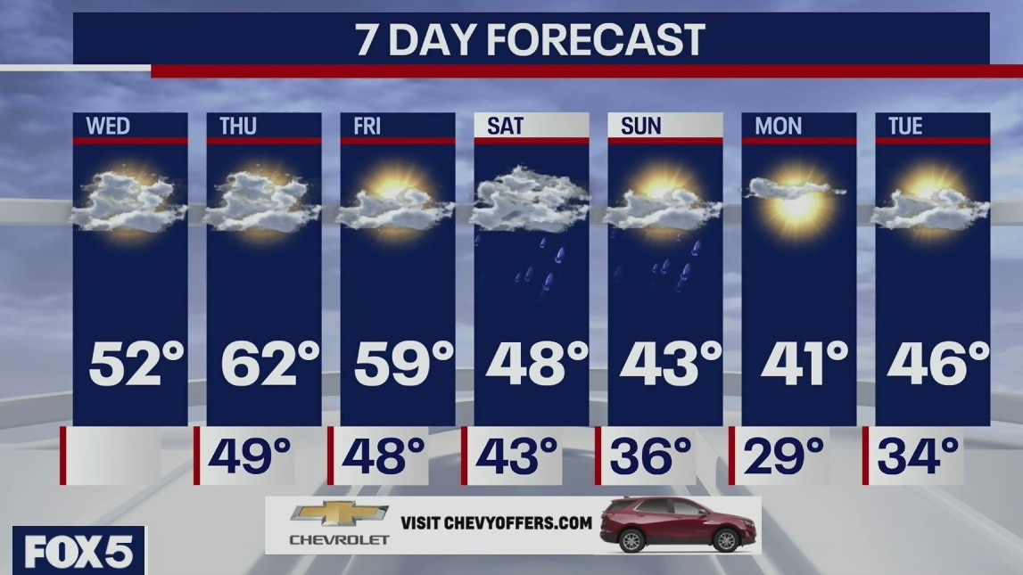 Meteorologist Audrey Puente says it is a cold start to the day. Clouds will roll in and some showers are possible in the afternoon and evening. The high temperature should hit 52 degrees.
