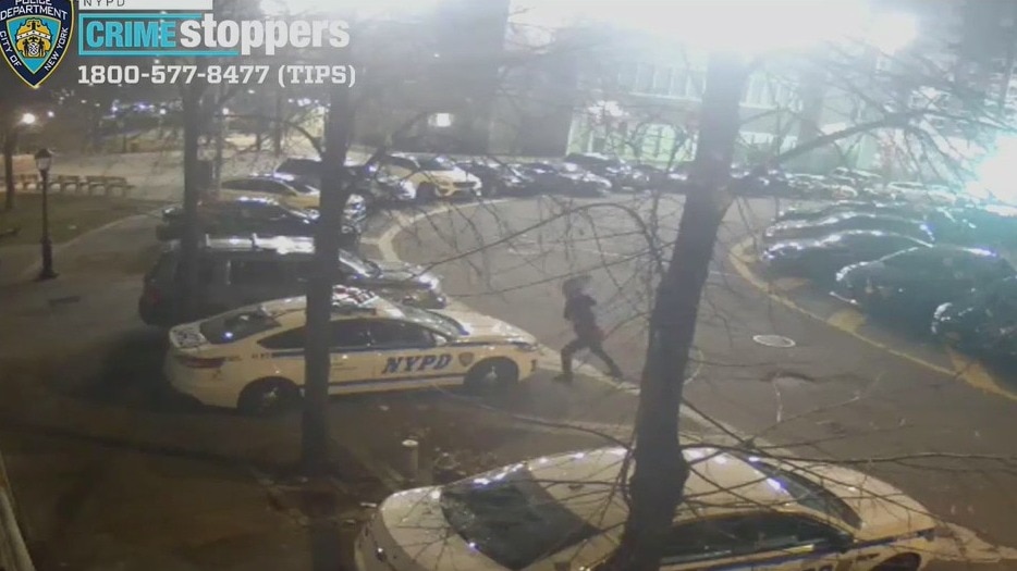 The NYPD was searching for the suspect who threw an object through the windows of patrol cars outside the 42nd Precinct in the Bronx.
