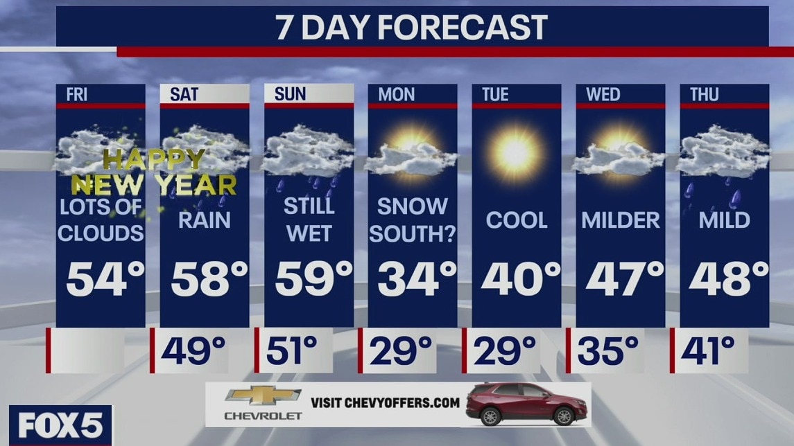 Cloudy skies remain to close out the last day of 2021. Temperatures are above normal. Saturday will be a soaker.