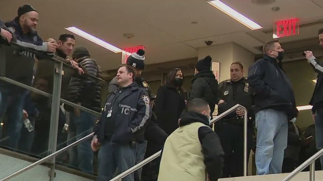 Hundreds of NYPD officers have gathered at Harlem Hospital to show their support for the pair of NYPD officers who were shot on Friday evening.