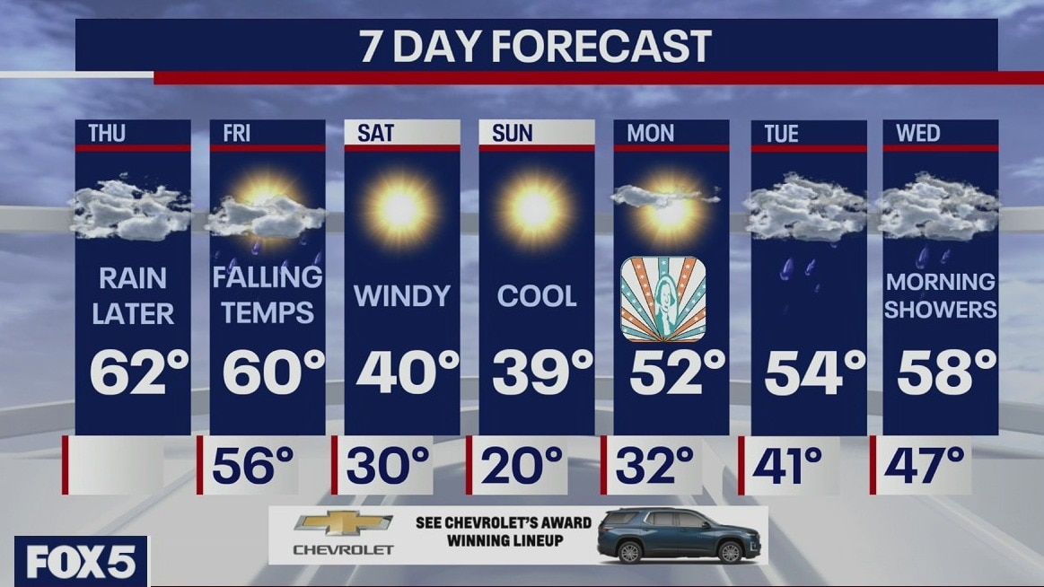 Meteorologist Mike Woods says a very warm day is ahead with lots of clouds. Rain moves in this evening. Severe winds are expected with a wind advisory going into effect tonight. Today's high is 62.