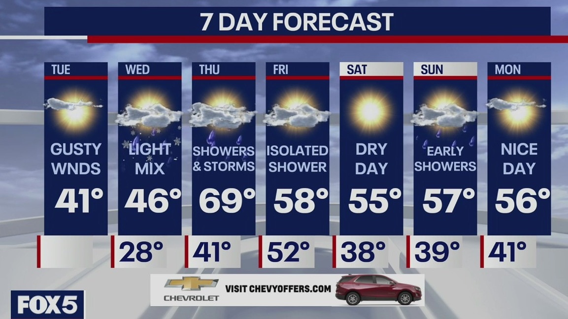 The winter chill remains. Wind gusts are up to 30 mph across the NYC region. Today's high should reach 41 degrees.