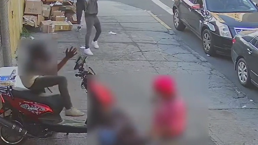 Police want to find two suspects who opened fire on a man on a scooter in Brownsville. The shots narrowly missed a child in a wheelchair and two other people