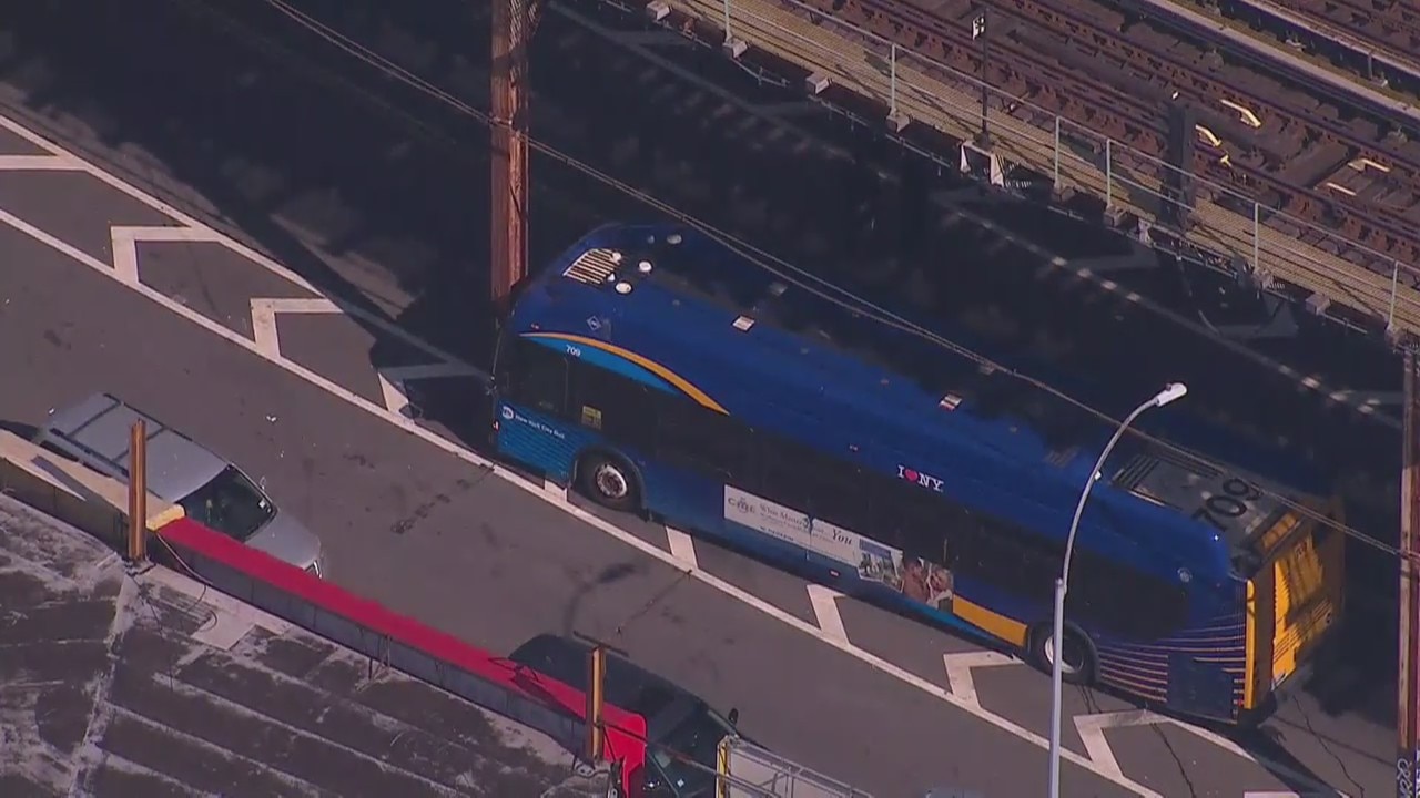 MTA bus hits pillar
