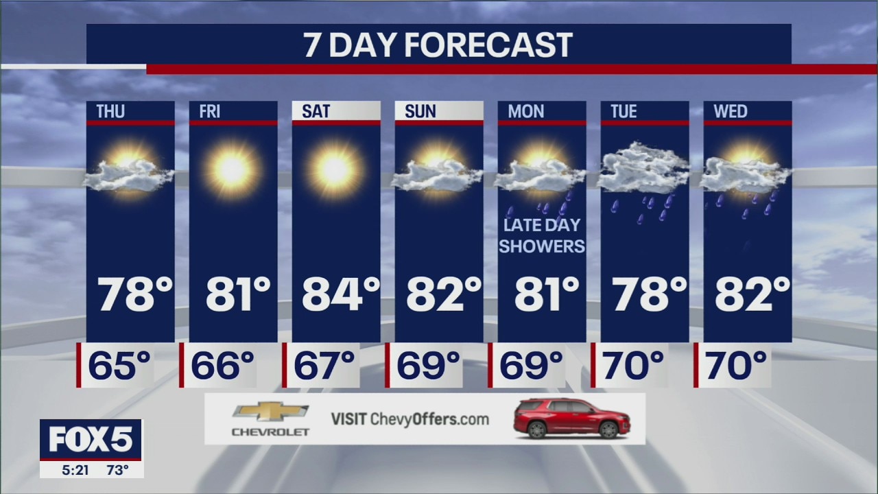 The clouds and a couple of showers are still in the forecast, but things will improve tonight and should be pretty pleasant through the end of the week and into the weekend! FOX 5 NY's Nick Gregory has your weather forecast.