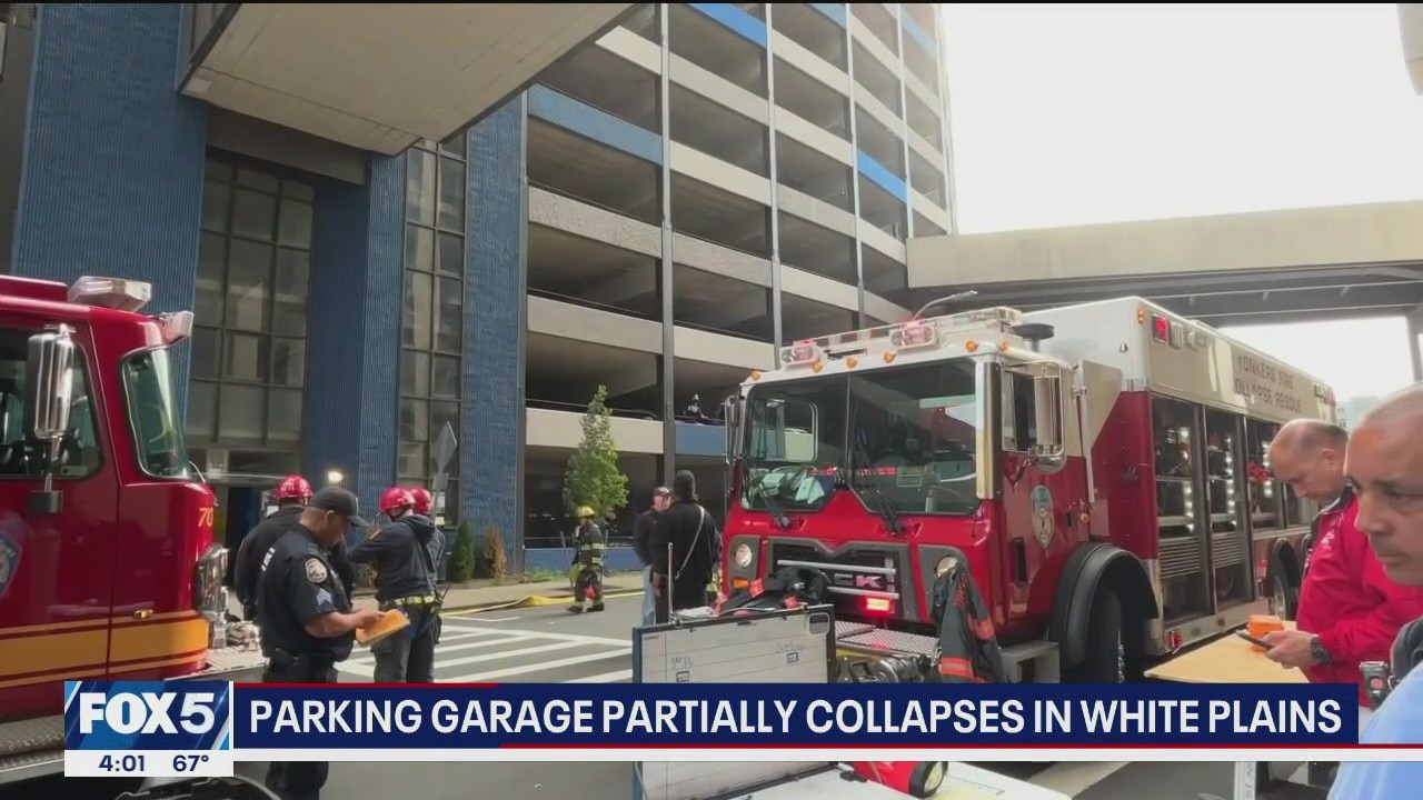In this FOX 5 News Block, the floor of a White Plains parking garage partially collapsed onto another floor earlier today. Also, an explosion at an auto body shop in Hillside, New Jersey, sparked a massive fire Tuesday evening, destroying several businesses and sending thick black smoke pouring into the air.