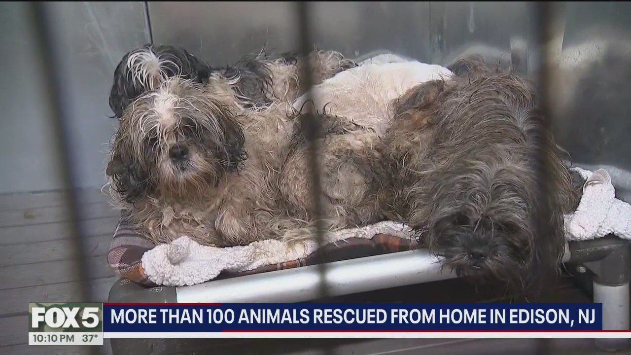 More than 100 animals were rescued from a home on Stony Road West in Edison after police responding to a medical emergency discovered dozens of dogs, chickens, rabbits, and birds living in unsafe conditions, authorities said.