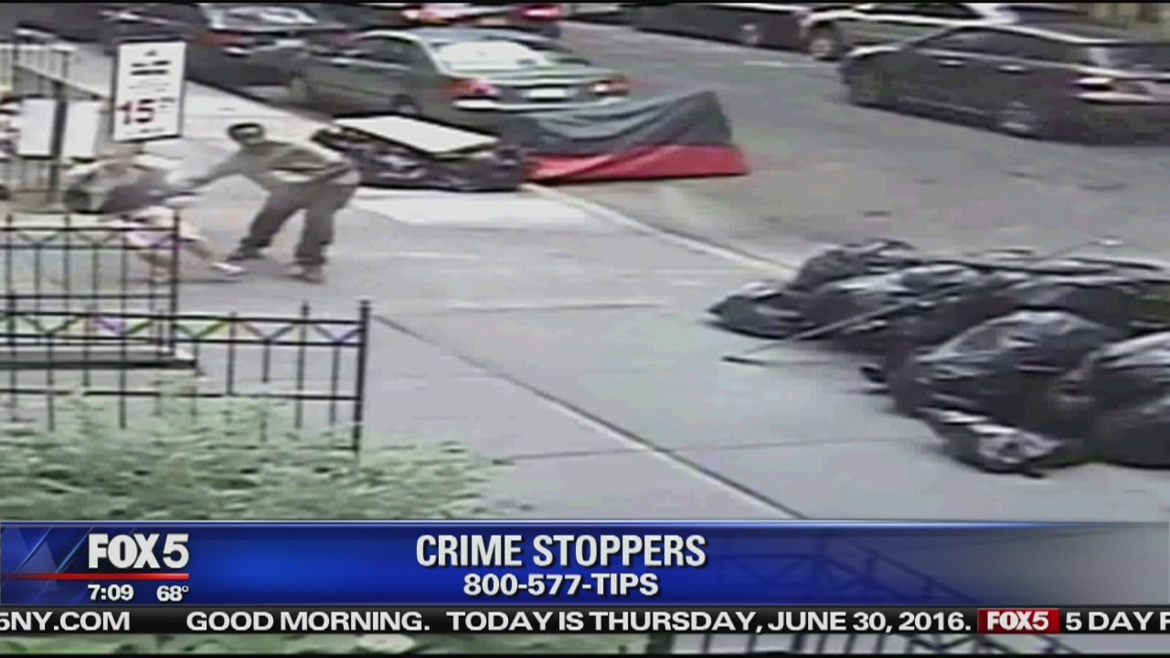 Police are looking for the man who shoved feces down a woman's shorts on the Upper East Side and then ran off.