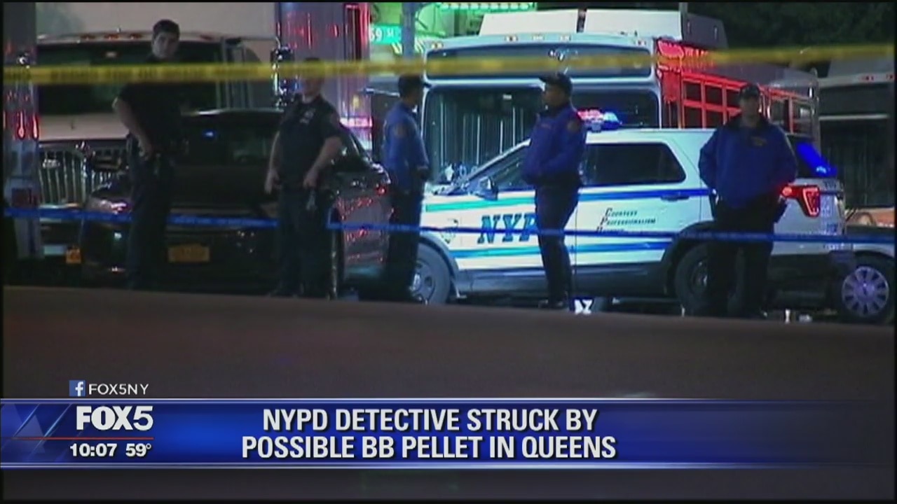 An NYPD detective was wounded in the forehead. Police say it may have been a BB.