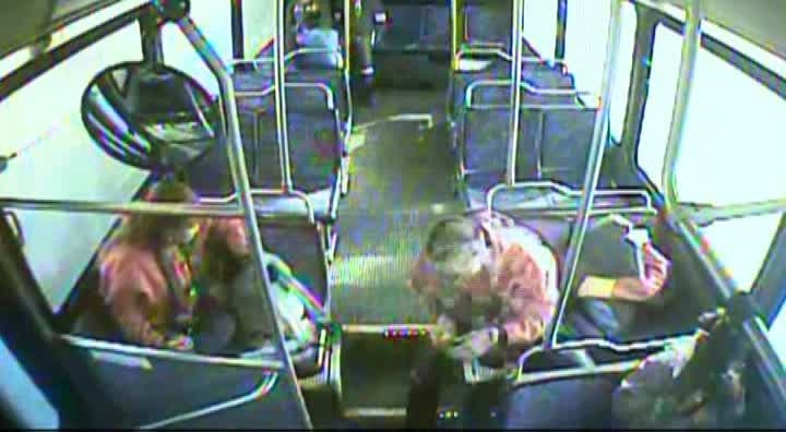 An explosion was captured by a camera on a bus in California.