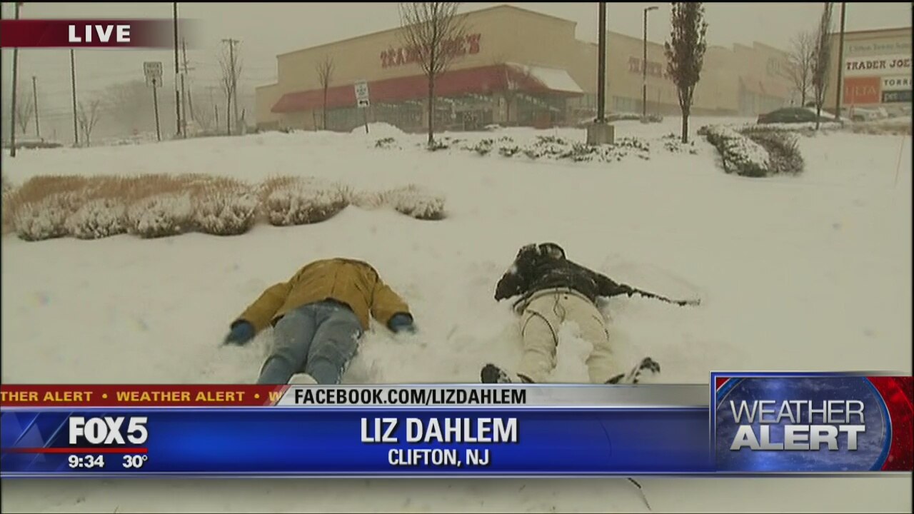 The snow was falling steadily Thursday morning in Clifton, New Jersey. Reporter Liz Dahlem and Photo journalist Al Daughtry had some fun making snow angels.