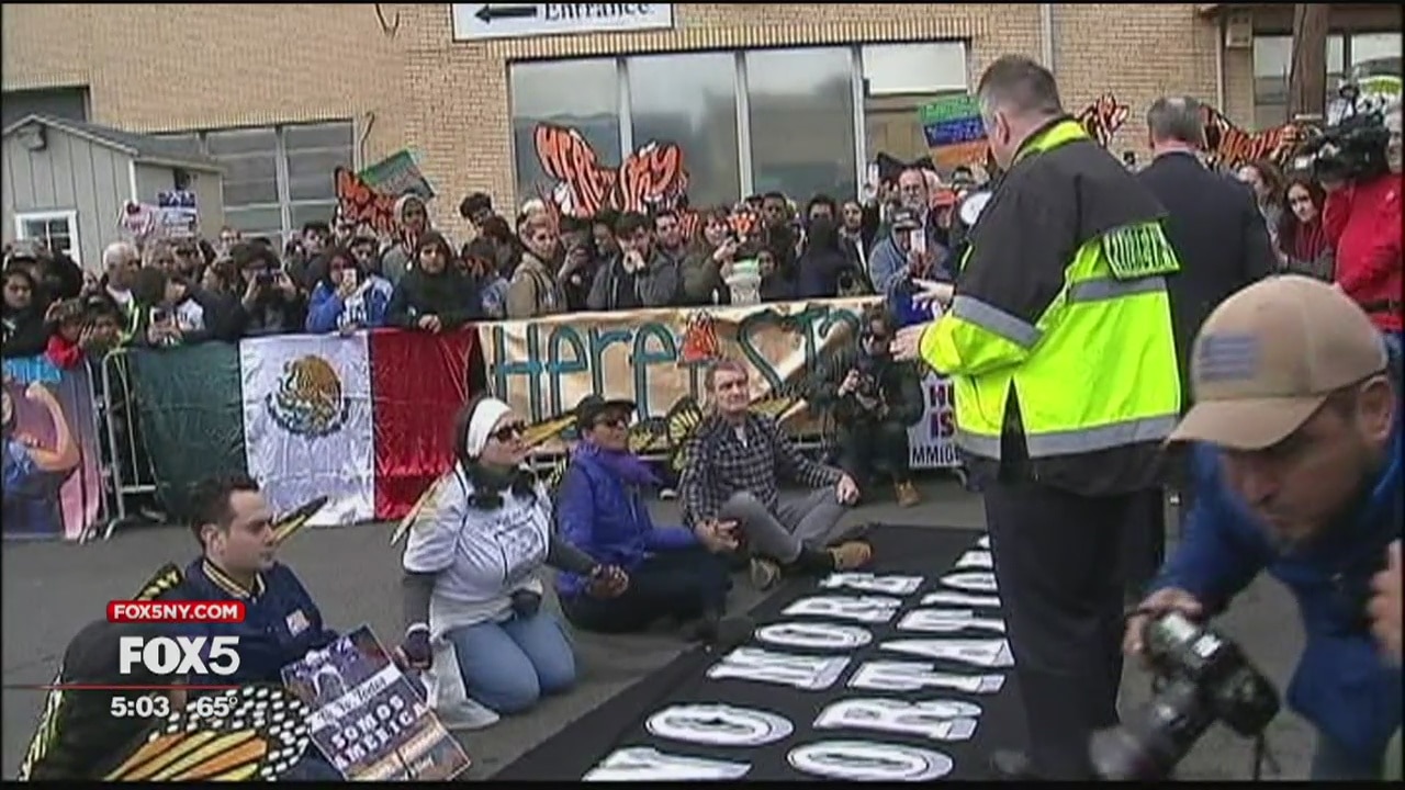 Immigrants, advocates and elected officials rallied outside an immigration detention center in Elizabeth, New Jersey, Thursday. All stood together protesting President Donald Trump's immigration policies and the recent ICE raids that have immigrant communities living in fear.