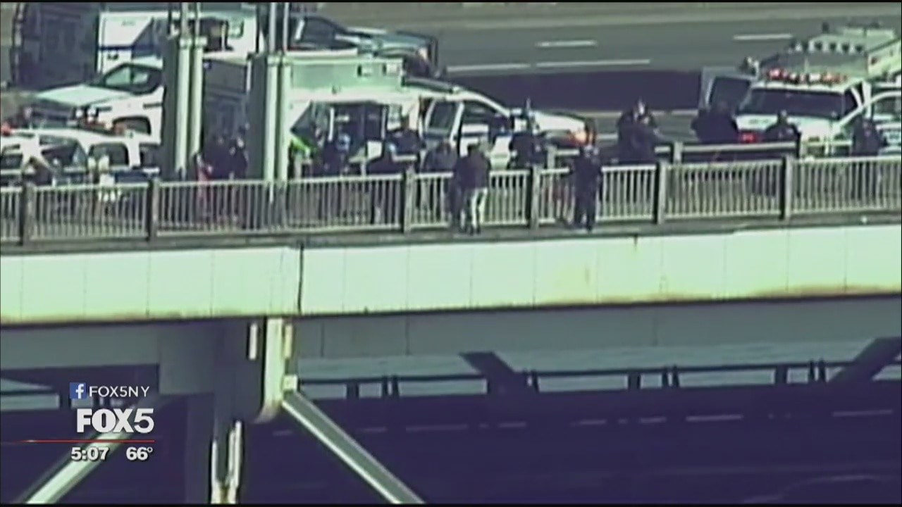 Port Authority Police and the NYPD rescued an apparently suicidal man who was on the edge of the upper level of the George Washington Bridge Friday morning.