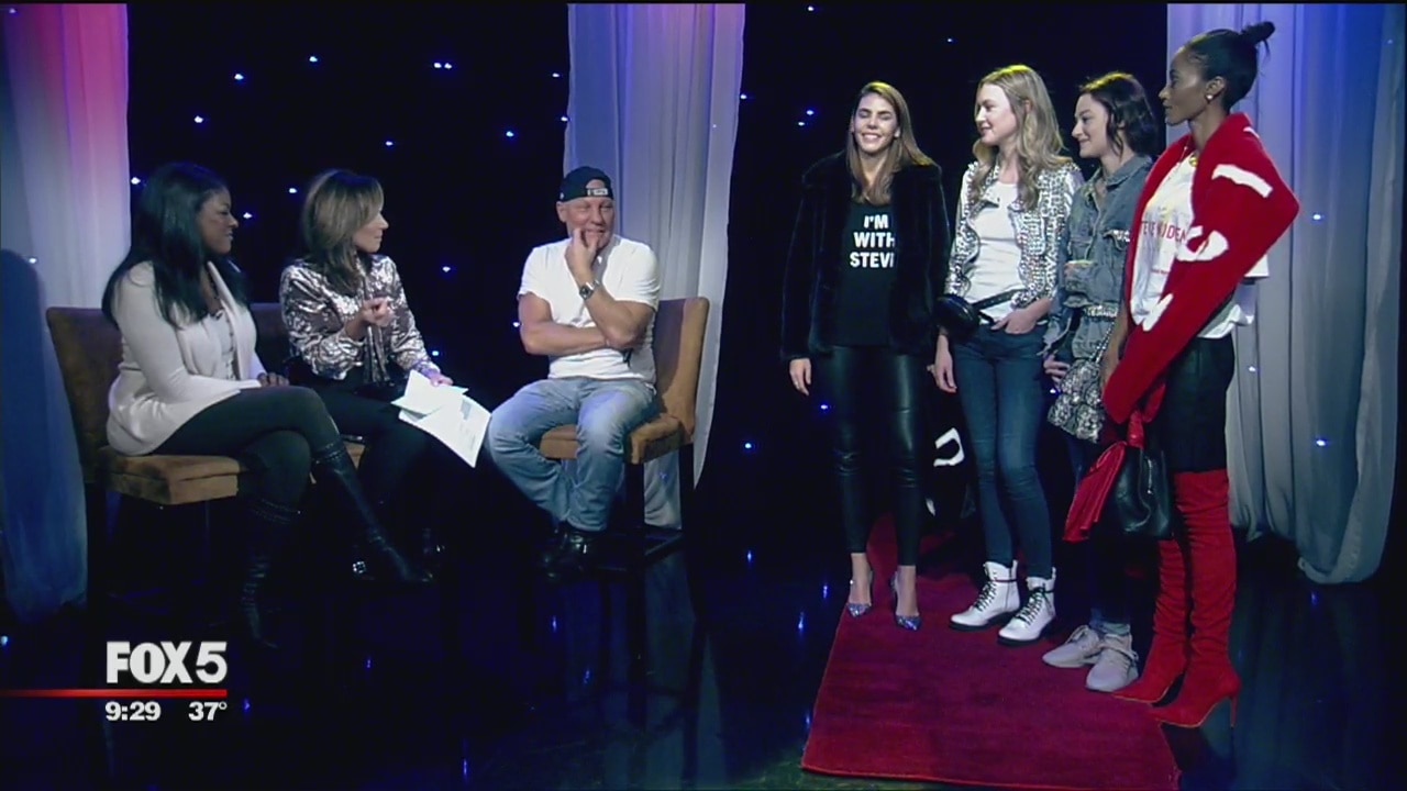 Designer Steve Madden and several models show off his latest designs.