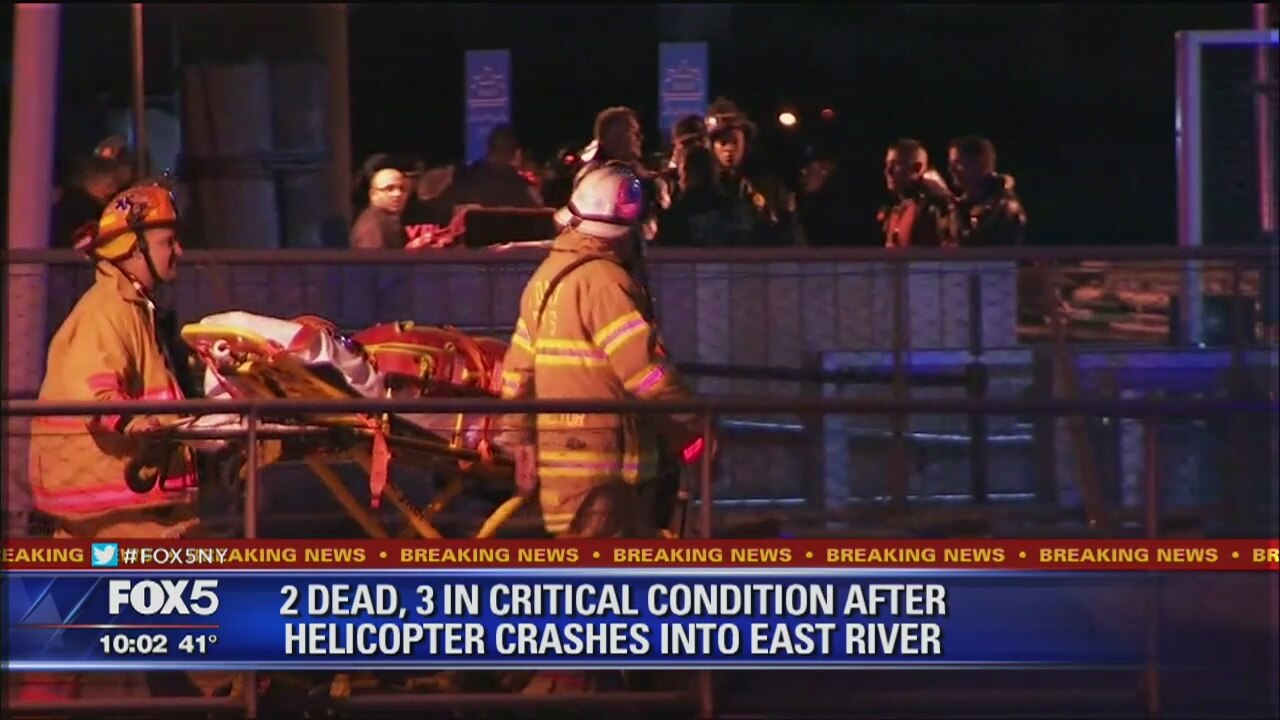 A helicopter crashed into the East River, killing at least two people. The pilot freed himself. Responders pulled three people in critical condition and transported them to a hospital along with the pilot.