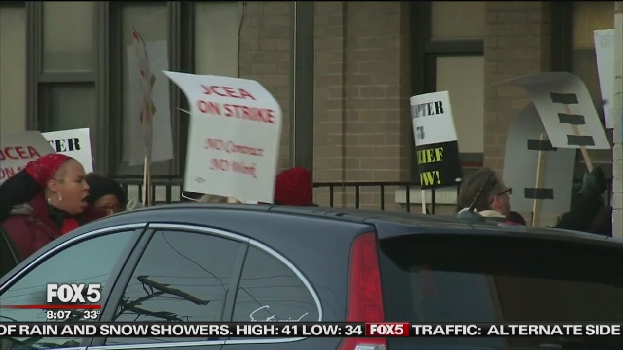 Teachers in Jersey City were on the picket line on Friday.