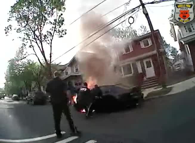 Police in Roselle Park, New Jersey pulled a man from a burning car.